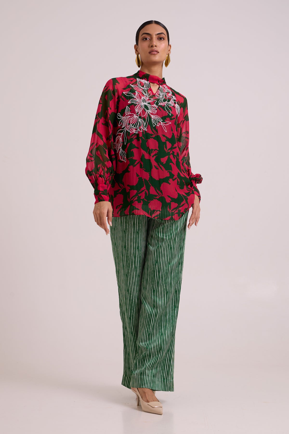 For the ones who dress like they’re painting a mood — Shirley is bold, breezy, and beautifully offbeat. The sheer floral overlay meets crisp stripes in a play of contrasts that somehow just works. Effortless, artistic, and unapologetically vibrant — this set is made for slow mornings that turn into spontaneous nights out.