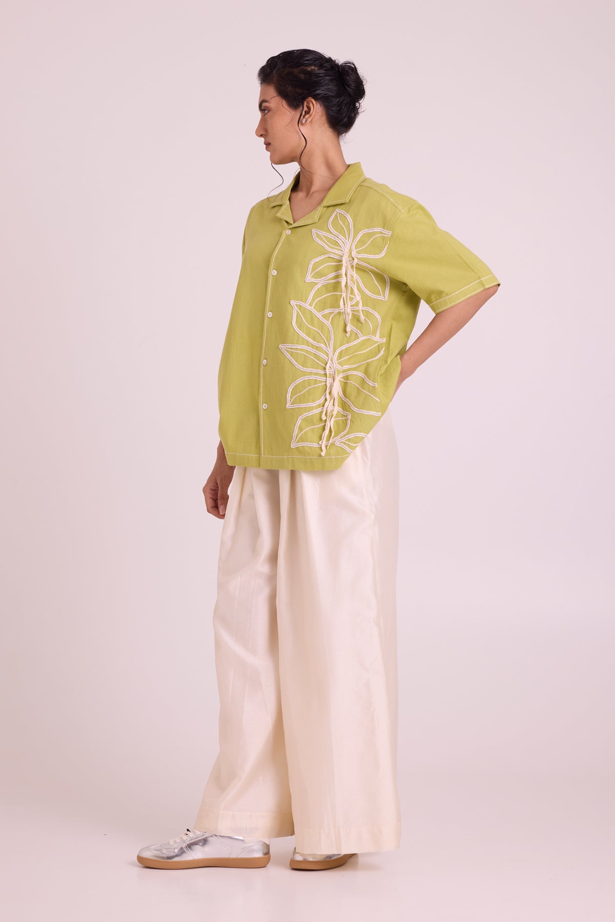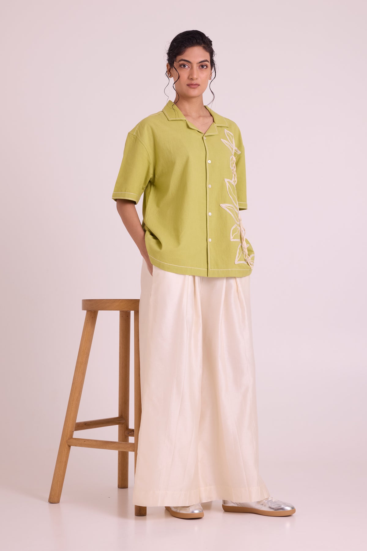 Binda is calm, collected, and covered in just enough fuzzy white embroidery to say, "Yes, I moisturize and read existential memes. Olive green for that grounded glow, and focused fuzz that's soft to the touch but sharp on style. It's gender-fluid, fashion-forward, and slightly obsessed with leafy vibes. Honestly? Same.