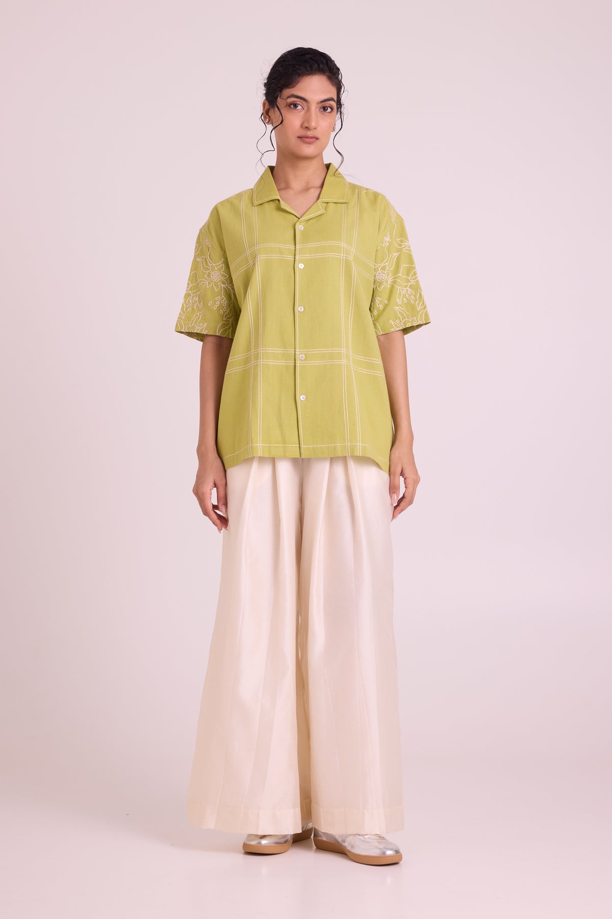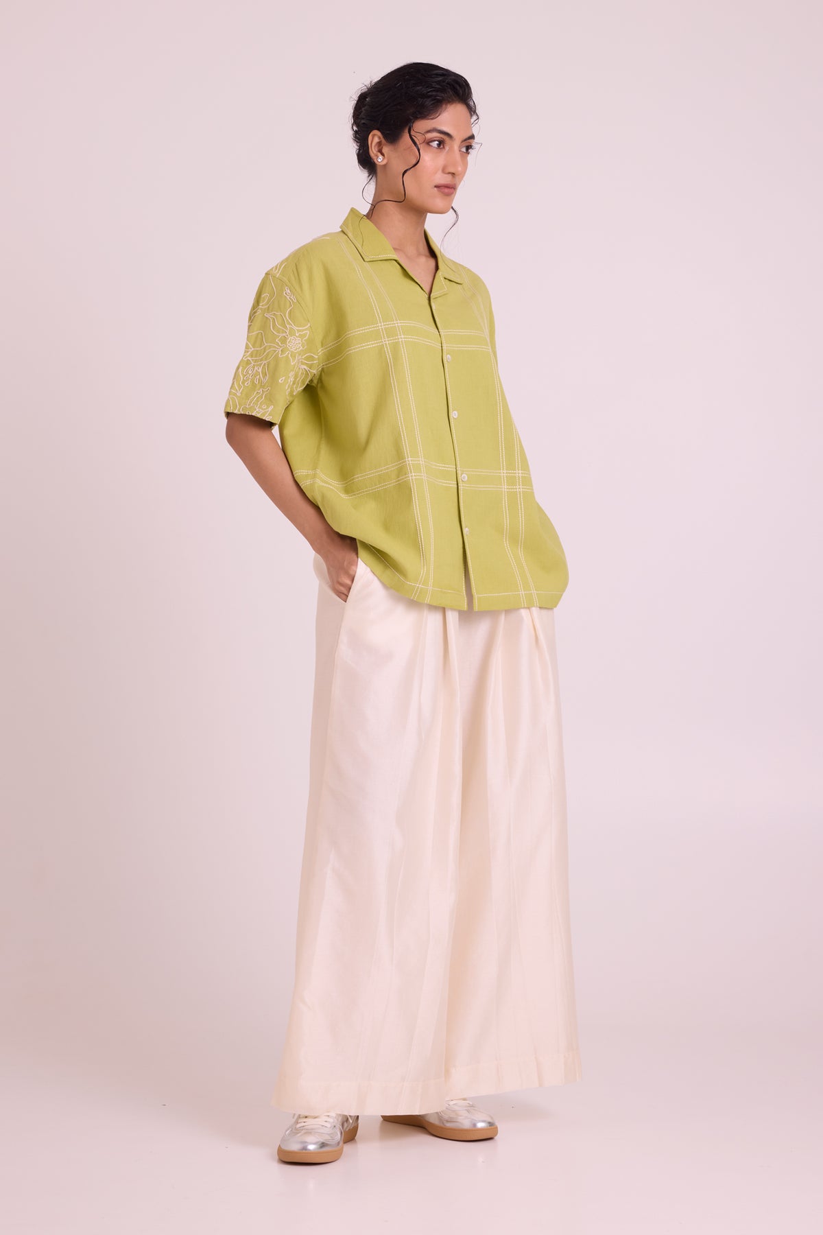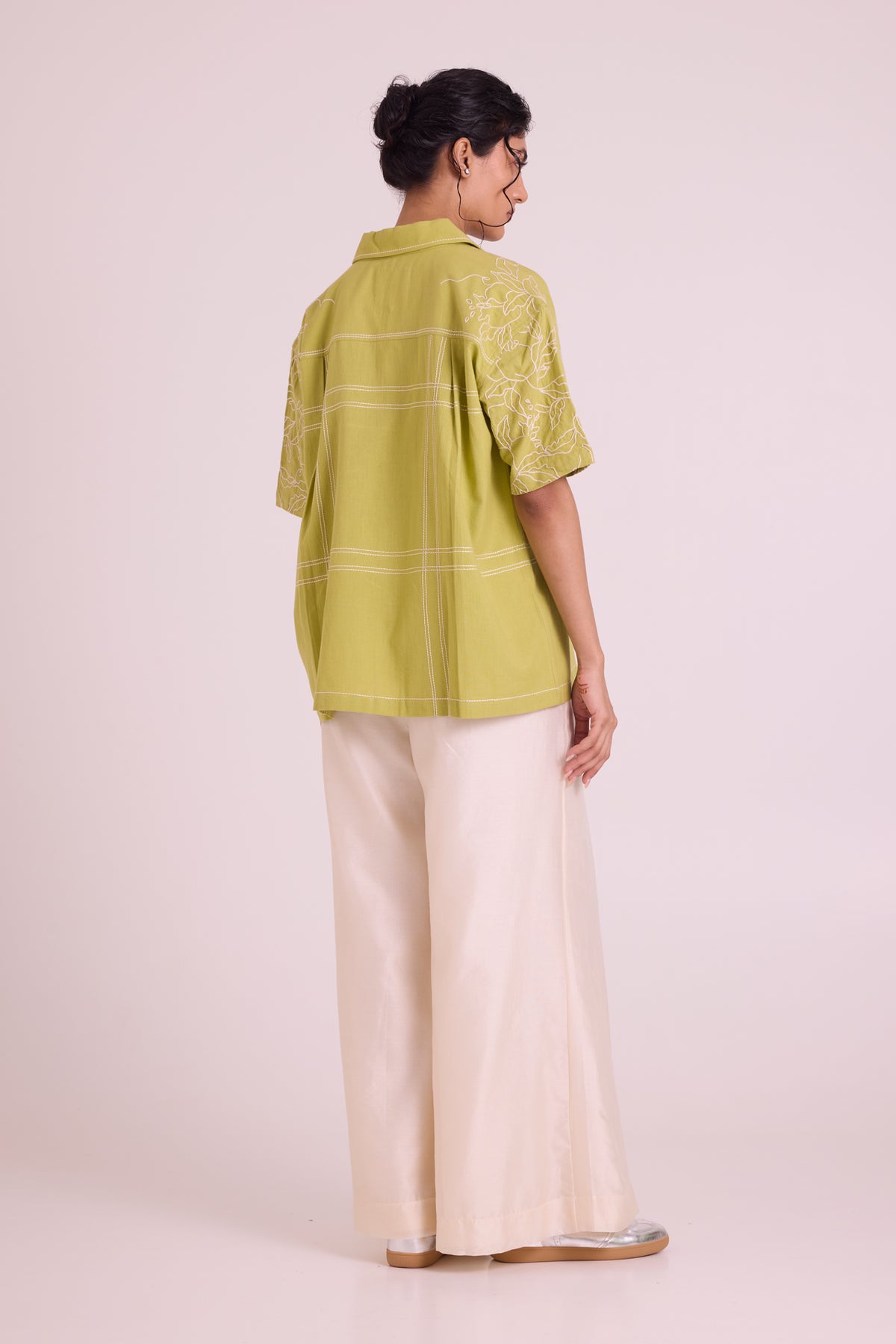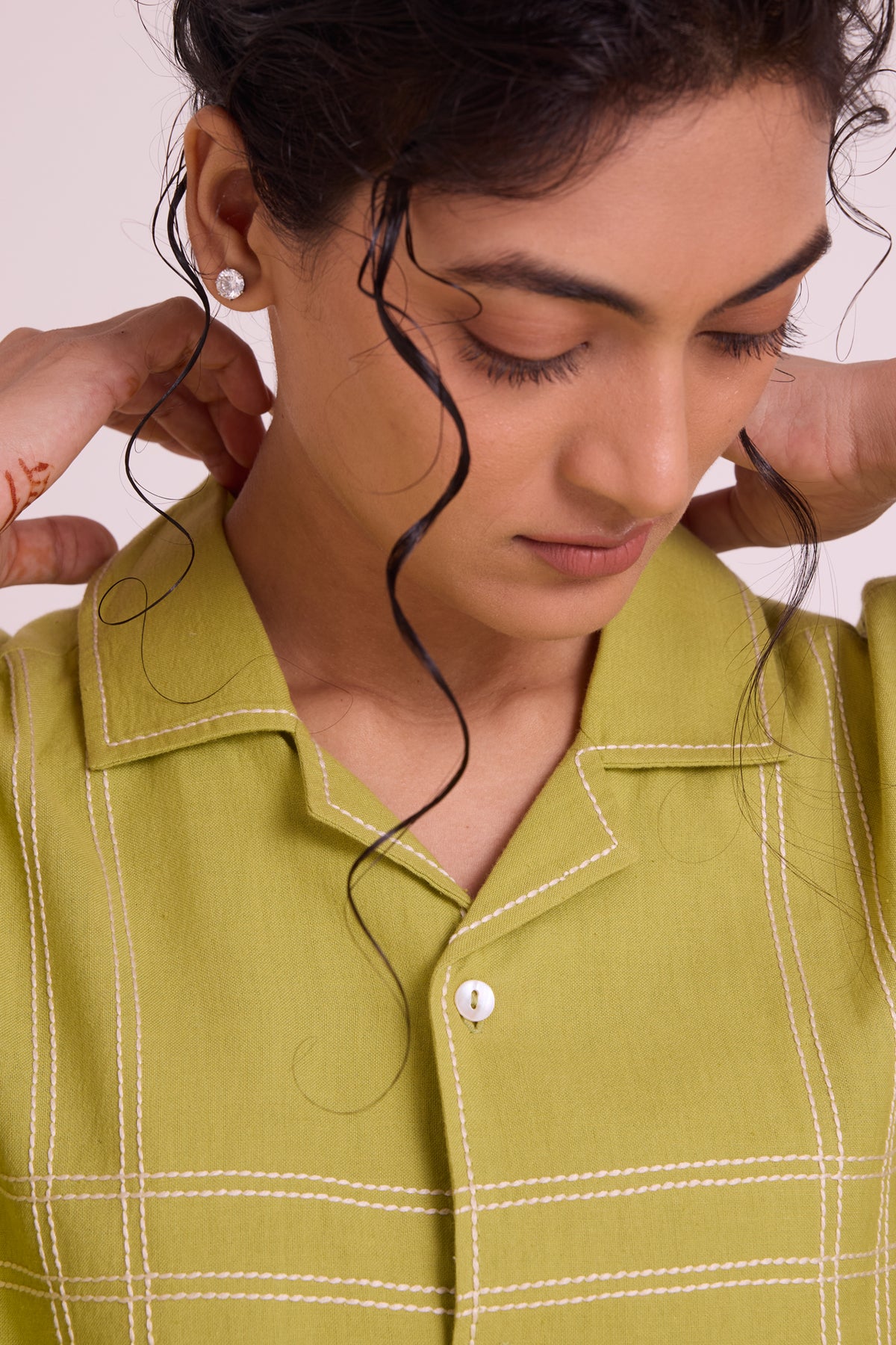 Olive green, grid-threaded, and embroidered just enough to look like you planned it. Clover is tidy on the outside, cheeky on the inside - like a spreadsheet that secretly listens to indie pop. Effortless structure, with a wink.